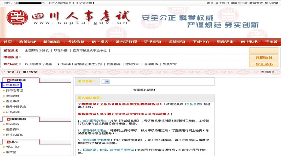 點擊如圖“我的后臺”可以看到如上圖內容。點擊“我要報名”進入報名頁面。