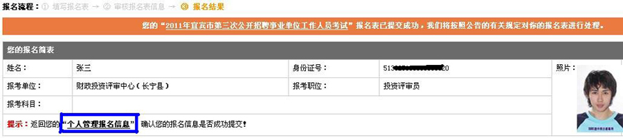 如上圖,按提示返回"個人管理報名信息"查看報名狀態。