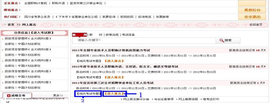 1、點擊“進入報名”填寫報名信息2、“相關考試專題”連接該考試相關信息頁面,包含報名時間、審核時間、繳費時間、準考證打印時間、報考崗位、所需條件、報考注意事項等,建議考生報名前仔細查閱。
