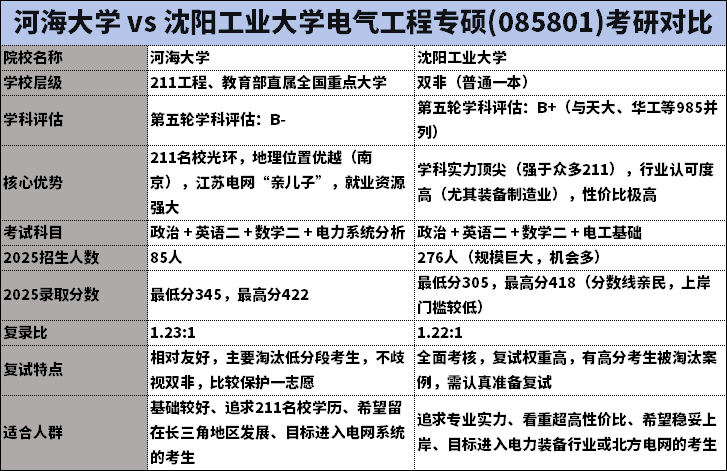 河海大學(xué)電氣工程專業(yè)考試科目為政治+英語二+數(shù)學(xué)二+電力系統(tǒng)分析。25年總招生人數(shù)為85人,其中調(diào)劑4人,一志愿錄取最低分為345分,錄取最高分為422分,復(fù)錄比為1.23:1,從復(fù)試錄取情況來看,只淘汰了低分段考生,沒有照顧本校考生或者歧視雙非考生,學(xué)校比較友好。