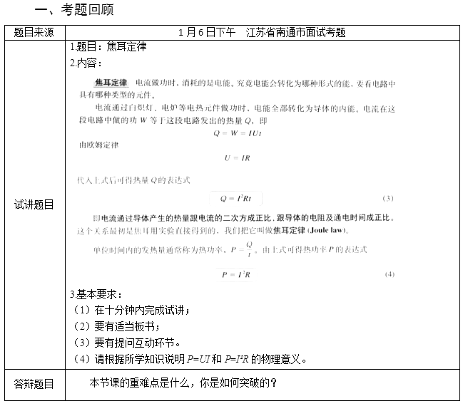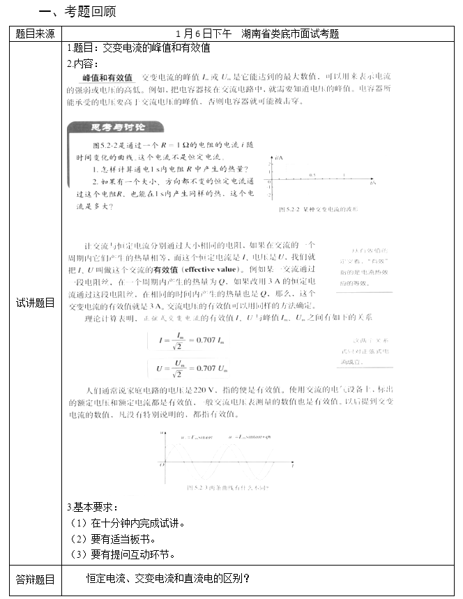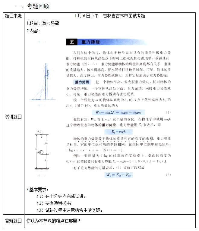 2017下半年教師資格證面試真題及答案:高中物理(第二批)