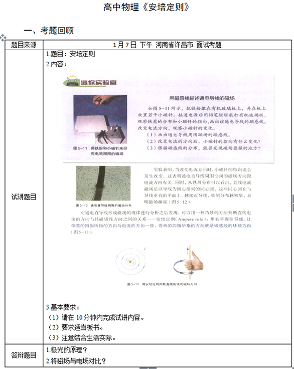 2017下半年教師資格證面試真題及答案:高中物理(第四批)
