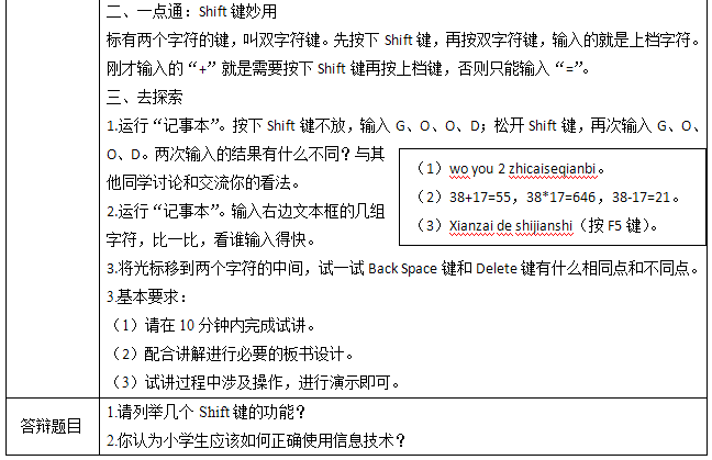 任務二:Shift鍵的使用方法。