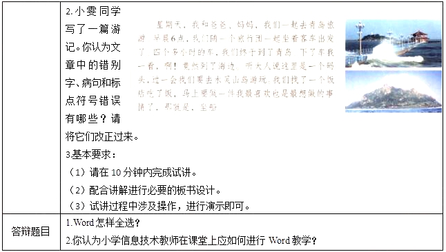 2.你認為小學信息技術教師在課堂上應如何進行Word教學?題目來源于考生回憶