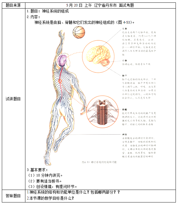 學生展示,教師及時指導,進行評價,并對腦和脊髓的功能加以強調,并引導學生對沒有考慮的地方進行補充。